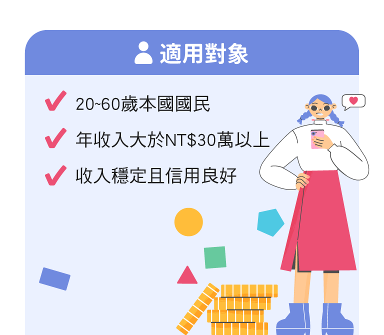 ,簡單輸入年收及工作狀況等資料,台新銀行將進行綜合評估,為您量身試算預估貸款額度及利率。