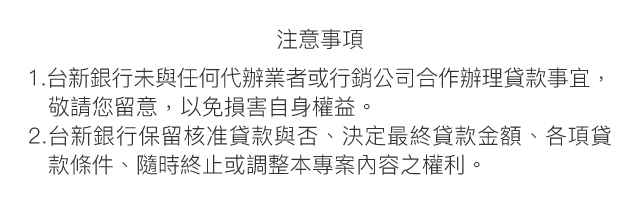 - 本行非贈品之製造者及服務提供者,與該贈品及服務之製造廠商或提供者無任何代理關係,如因使用該贈品或服務產生之爭議,由該贈品或服務廠商自負責任。