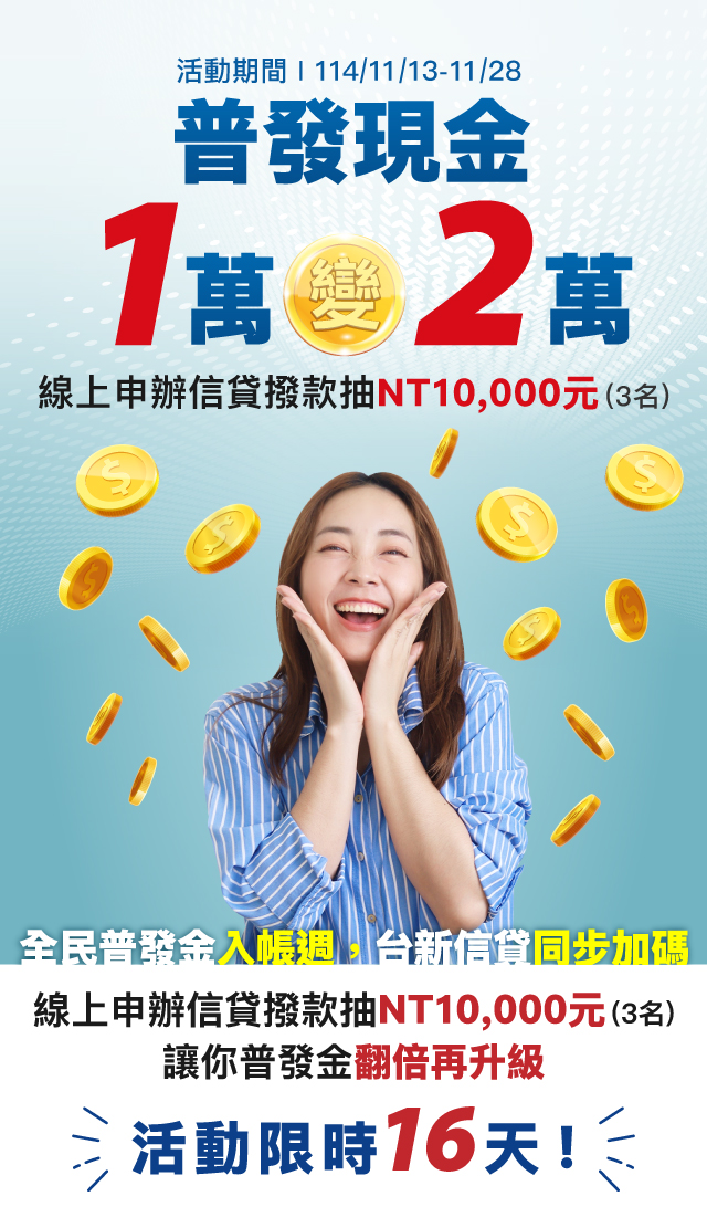本網站使用Cookies以提供您個人化服務,當您繼續瀏覽本網站,即表示台新銀行可以使用您的Cookies。詳請參閱隱私權保護及著作權聲明了解更多詳情。 |
