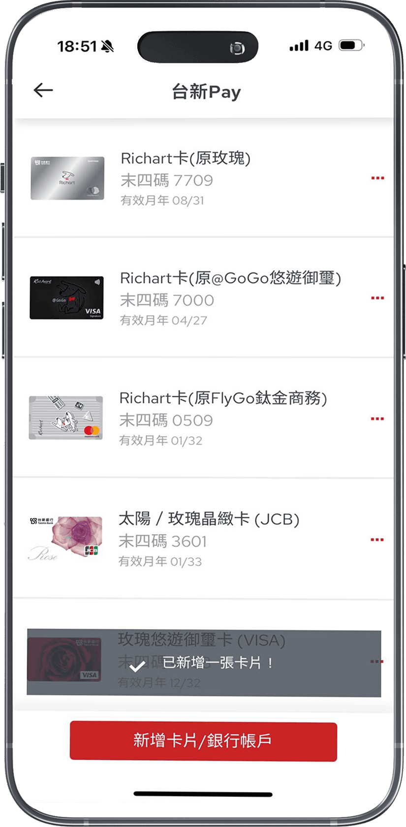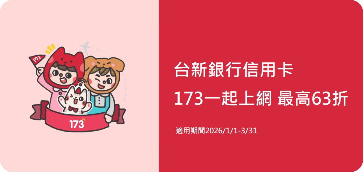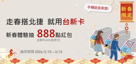 - 本活動詳細內容,請依台新銀行官網公告,其他未盡事宜依台新銀行信用卡會員約定條款辦理。